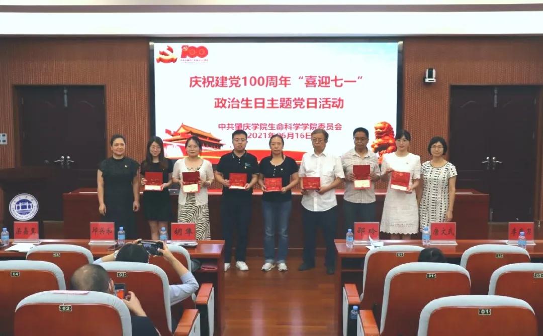 紧接着,举行政治生日卡颁发仪式。党委书记胡隼、副经理邵玲为在六、七月份入党的党员颁发政治生日贺卡,勉励党员同志不忘初心,牢记使命,赓续红色基因,不断推动生科院教育事业向前发展。
