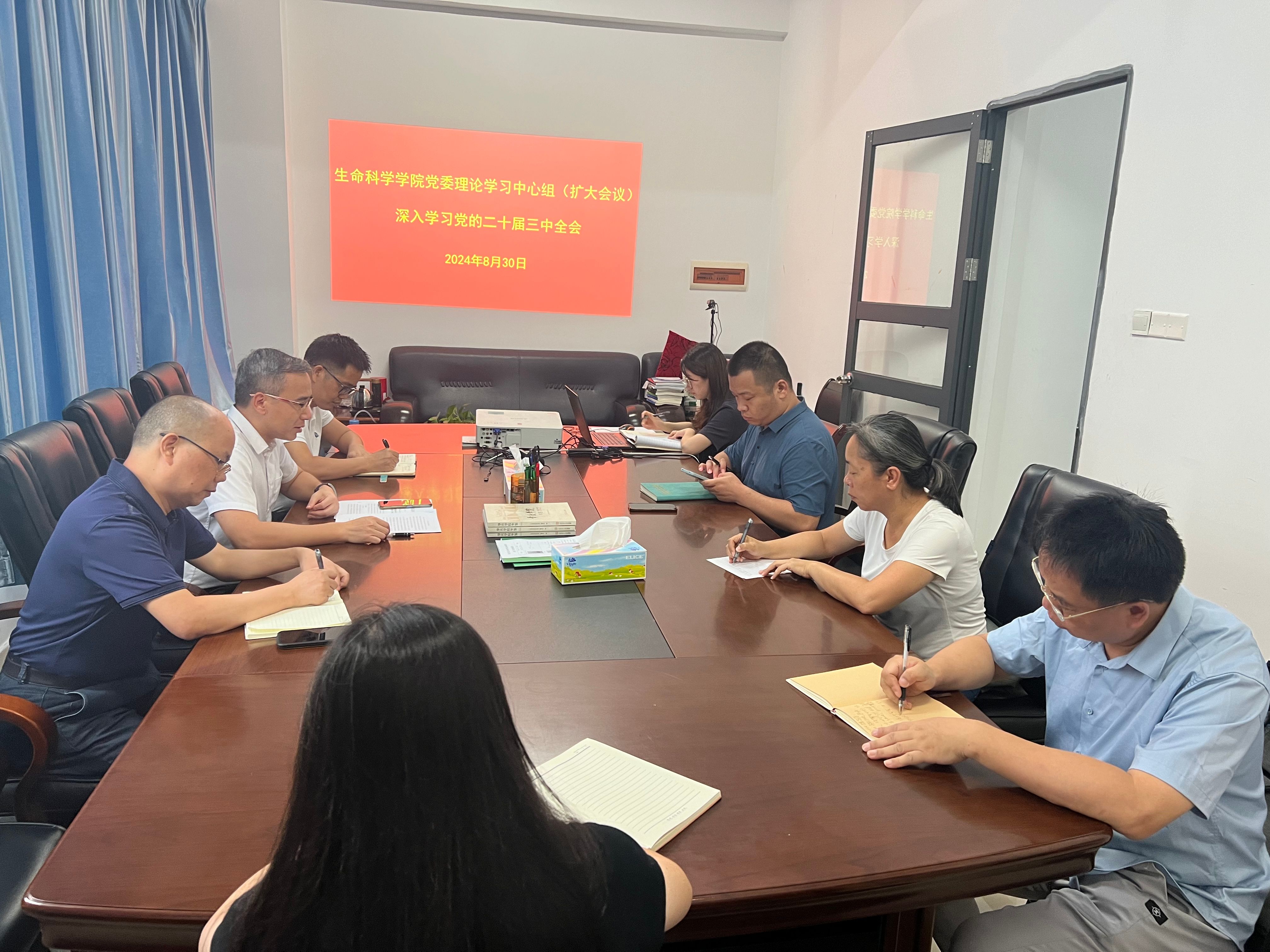 8月30日上午,公司党委理论学习中心组在公司学术会议室开展集中学习,专题学习党的二十届三中全会精神和习近平总书记在党的二十届三中全会上的重要讲话精神。公司党委书记黄剑青领学,副书记邱兴和、副经理刘拥海以及各党支部书记参与会议,有关同志深学细悟全会精神。