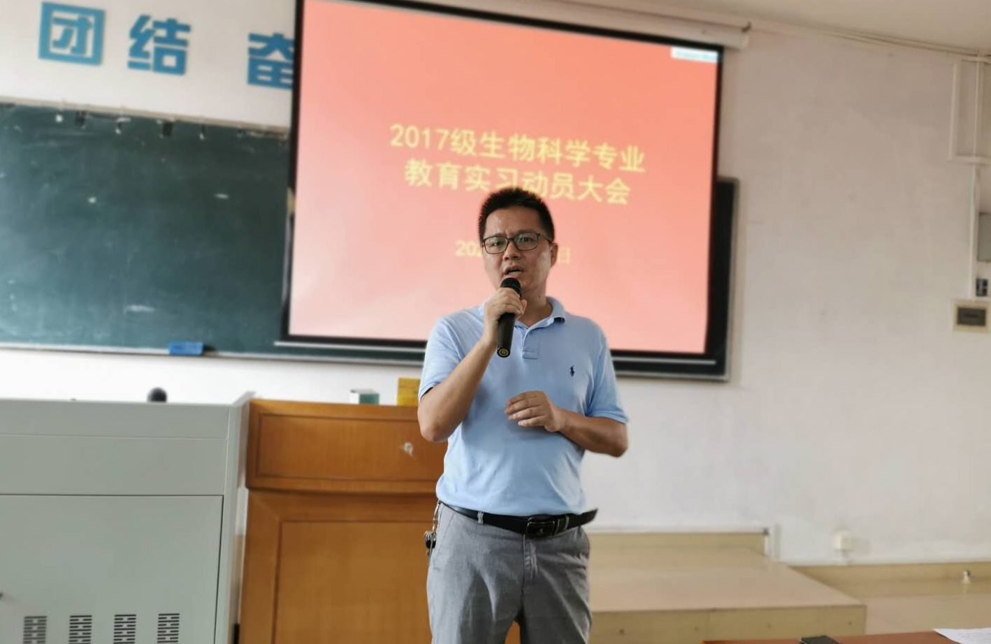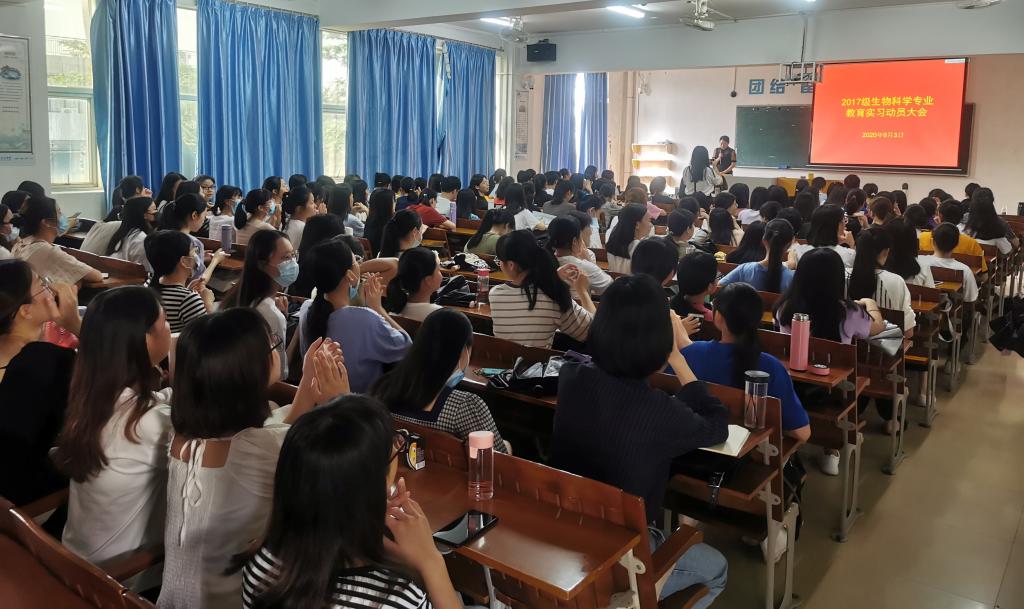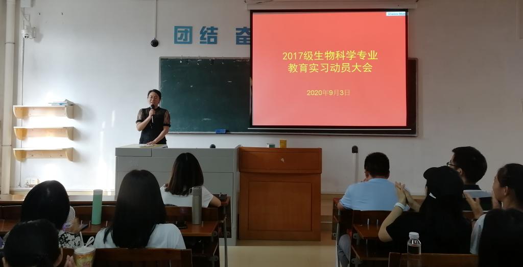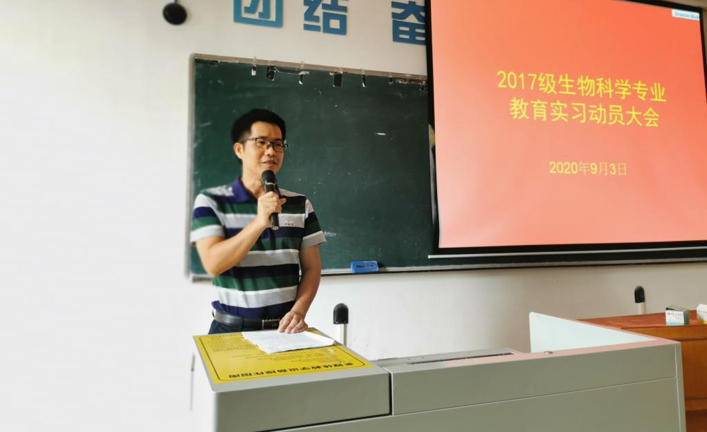本网讯 2020年9月3日上午,伟德betvlctor1949源于英国2017级生物科学专业教育实习动员大会在第二教学楼503室召开,副经理唐文武、党委副书记邱兴和出席会议并作动员讲话,生物教学法课程组老师、实习带队老师、年级辅导员以及2017级140多名师范生参加会议。