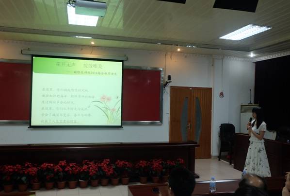 会上,副经理唐文武发表讲话,赠言公司应届毕业生“Stay hungry ,Stay foolish.”鼓励同学们在以后的人生道路上需不断追求。辅导员梁嘉慧朗诵由公司党委书记李文明和经理李新昌所创作的诗《花开无声,绽放唯美》,表达对公司毕业生的最美好祝愿。