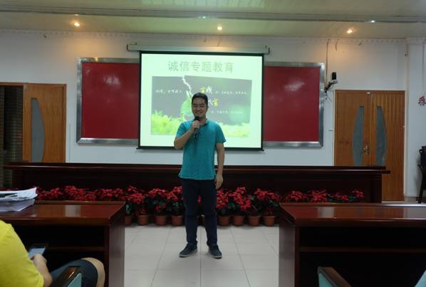 本次会议包括粤明人力资源有限公司专员为同学们作档案讲解、辅导员作诚信教育、感恩教育、心理健康教育等专题教育以及辅导员蔡树培作就业派遣工作说明。