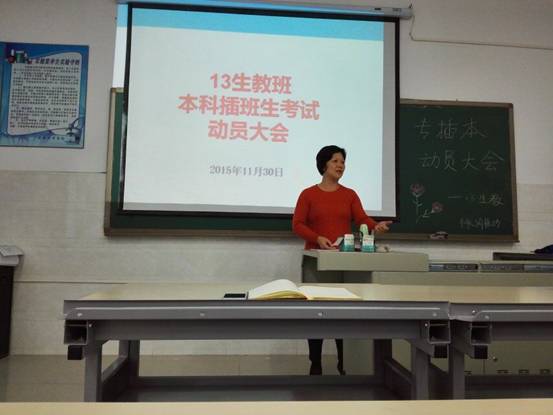 2015年11月30日,生科院在理工楼举办2015年本科插班生应考分析与解读备考讲座暨2016年本科插班生考试动员仪式,公司党委副书记胡隼,辅导员蔡树培,13级生物教育班班主任陈丽辉出席了本次会议。