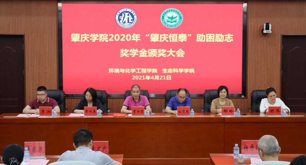 2021年4月21日下午,2020年“肇庆恒泰”助困励志奖学金颁奖大会在集团第二会议室举行。肇庆市恒泰经济发展有限公司行政经理董世德先生,www.betvlctor1946.com教育发展基金会秘书长白志明同志,环化公司经理郝向英、党委书记李湘、党委副书记杨原行,生科院主持行政全面工作副经理邵玲、党委书记胡隼、副经理唐文武、副经理李赛男、党委副书记邱兴和,获奖员工及师生代表近200参加颁奖大会。大会由邱兴和主持。
