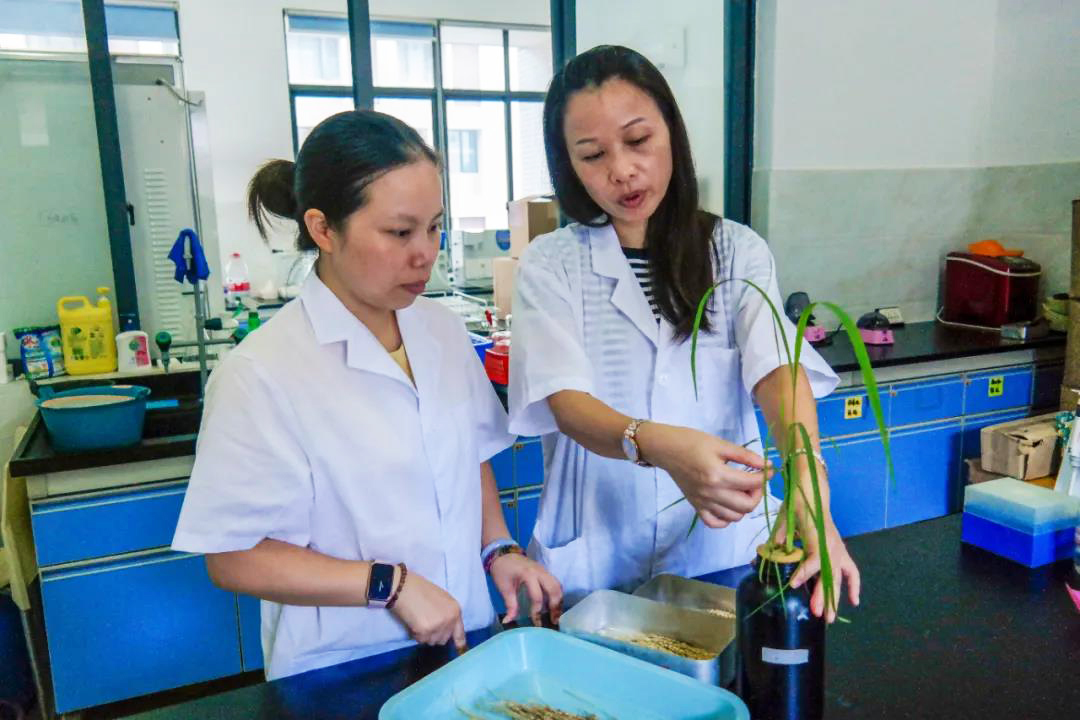 其次是工作的开展。培养水稻等植物材料生长缓慢,受季节限制大,为满足实验材料的需求必须大规模种植,但是又与转基因涉及的伦理知识相悖;科研的基础设备与仪器跟不上研究的步伐,缺乏指标性策略做支撑;同时又因为疫情影响,员工在假期期间不能留校做实验……重重关卡,俞乐与她的团队一一破解。不能大规模培养材料,就在公司生物园大田基地种植,发展人工气候项目;水稻受季节限制大,怕错过了水稻生长的最佳时间,老师和员工便主动缩短假期,轮流回校看护水稻;基础设备和仪器跟不上,俞乐便亲自送样,奔波于广州的各个合作机构;缺乏指标性的策略,俞乐和她的团队就慢慢研究摸索……关关难过关关过,长路漫漫亦灿灿。