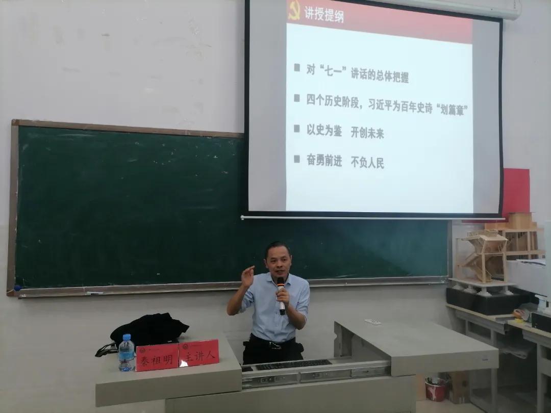 为深入学习贯彻习近平总书记在庆祝中国共产党成立100周年大会上重要讲话精神,推动公司党史学习教育深入开展,10月15日,公司邀请了习近平“七一”重要讲话精神宣讲员、马克思主义公司秦祖明老师在理工楼115开展专题宣讲,公司党员教师、专升本新生党员、入党积极分子约70人参与了本次宣讲活动。