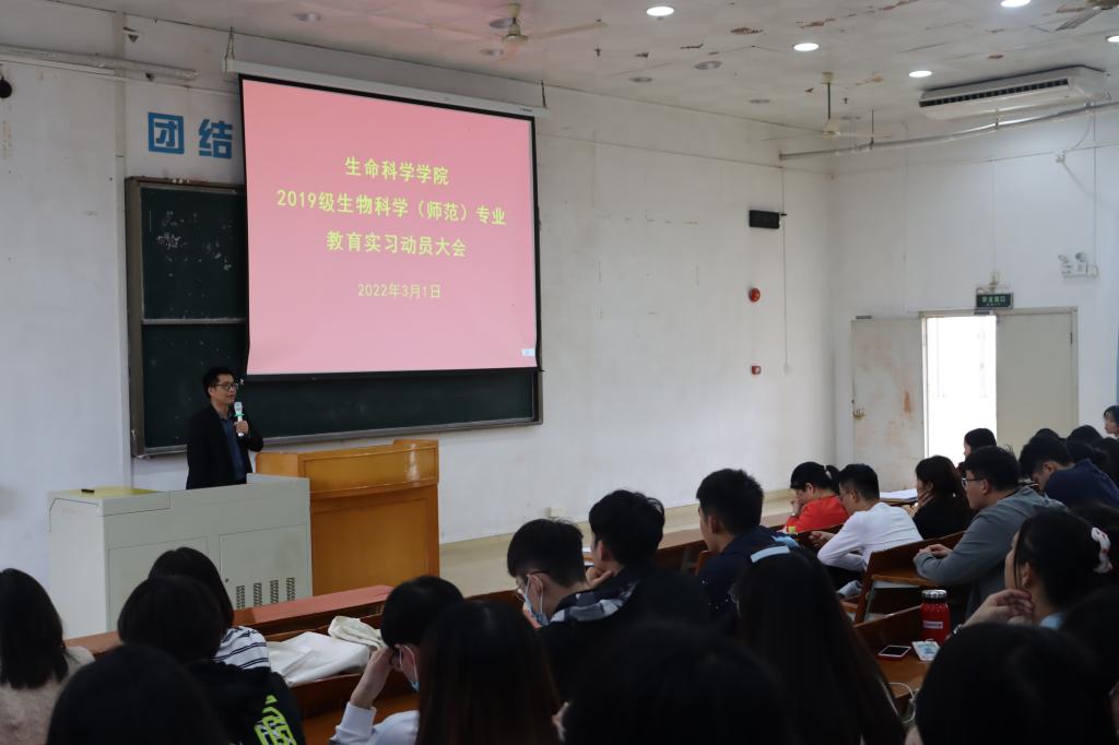 本网讯 2022年3月1日,伟德betvlctor1949源于英国于第二教学楼704教室召开2019级生物科学(师范)专业教育实习动员大会。公司主管实习实践工作的李赛男副经理、党委副书记邱兴和、焦少珍副教授、黄麟淇老师、杨凤梅老师、黎素辅导员及2019级生物科学专业首批实习生参加会议。