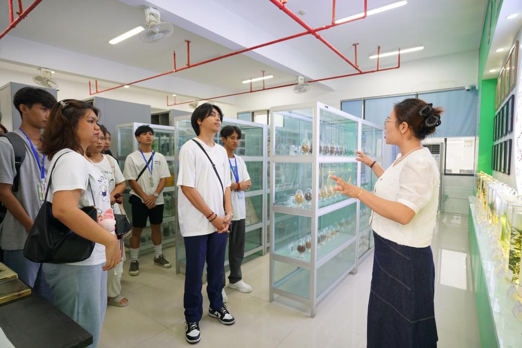 张笑春、朱惠敏老师分别向泰国格乐大学的师生们介绍了公司的动植物标本室的基本情况,科普了相关动植物标本的知识。从微小的昆虫到庞大的哺乳动物,从色彩斑斓的鸟类到形态各异的植物,无不令人叹为观止。泰国格乐大学的师生们纷纷驻足观看,认真聆听老师的讲解,不时发出惊叹和好奇的声音。