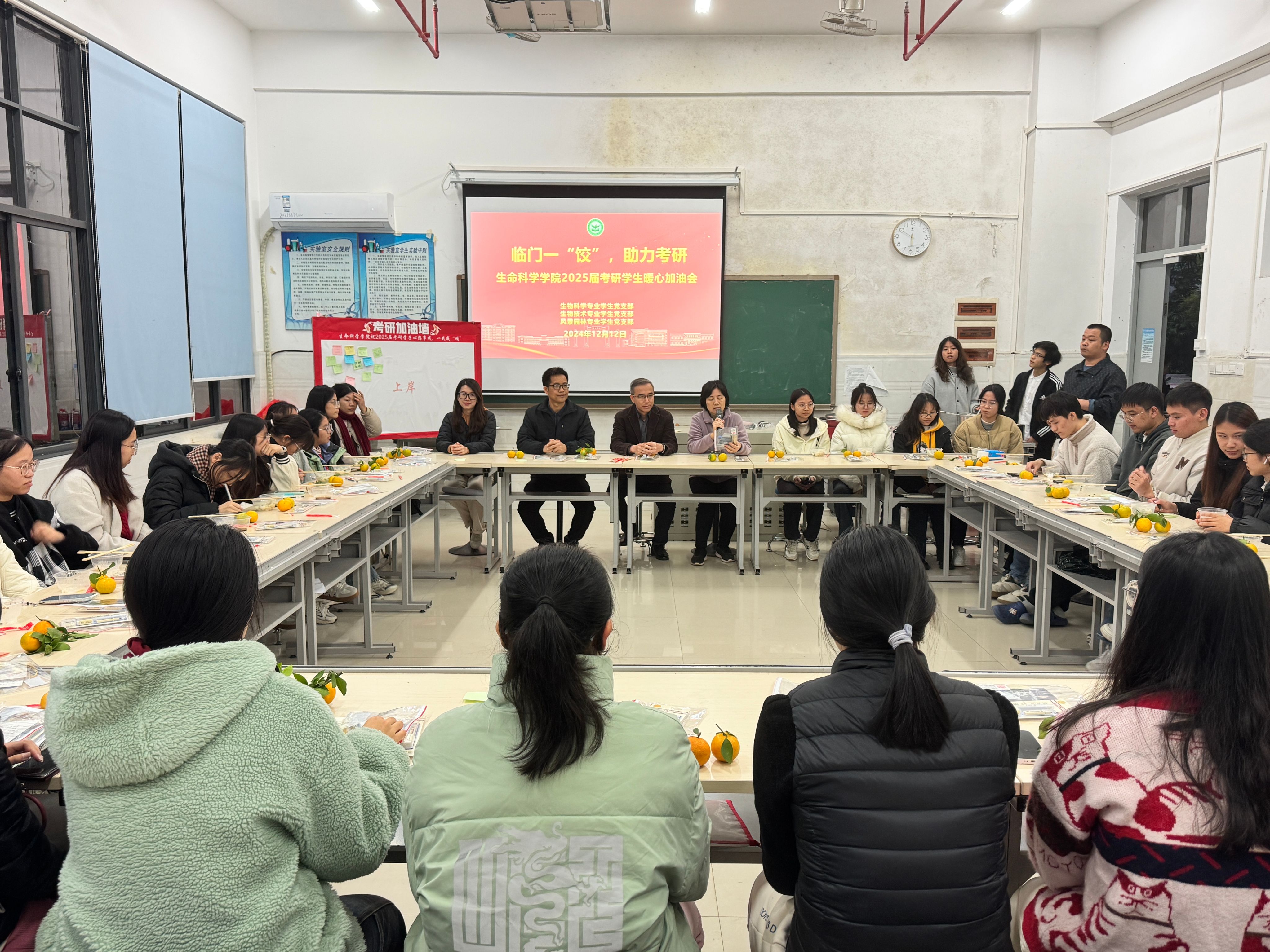 2024年12月12日,在考研倒计时九天之际,伟德betvlctor1949源于英国举办”临门一‘饺’,助力考研” 暖心加油会。公司党委书记黄剑青、经理邵玲、党委副书记邱兴和以及全体辅导员、毕业班班主任、2021级考研员工代表70多人参加活动,在寒冬岁末为考研学子送上温暖与祝福。