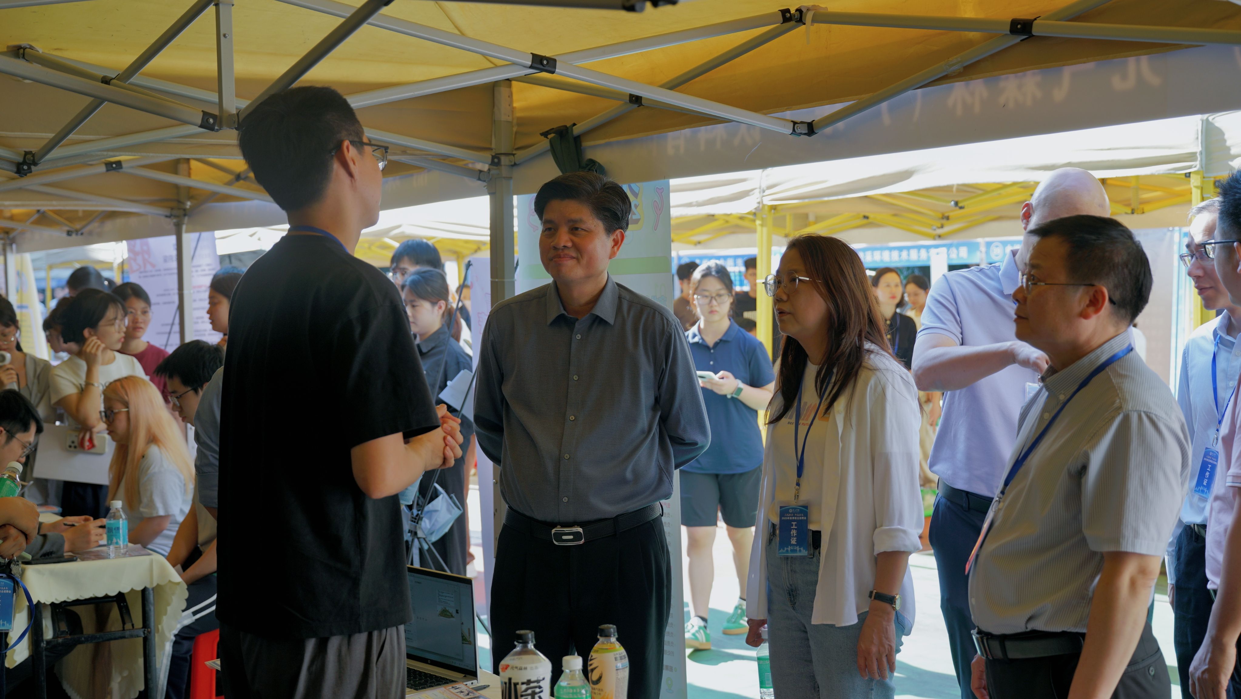 公司党委副书记欧洪湛在员工工作部(招生与就业指导中心)部长陈玉华的陪同下现场指导工作。欧洪湛副书记细致走访多家用人单位,深入了解行业发展趋势与人才需求,亲切慰问参会毕业生,并勉励大家把握机遇、顺利就业。三个主办公司的相关负责人全程协调保障,确保招聘会高效、有序进行。