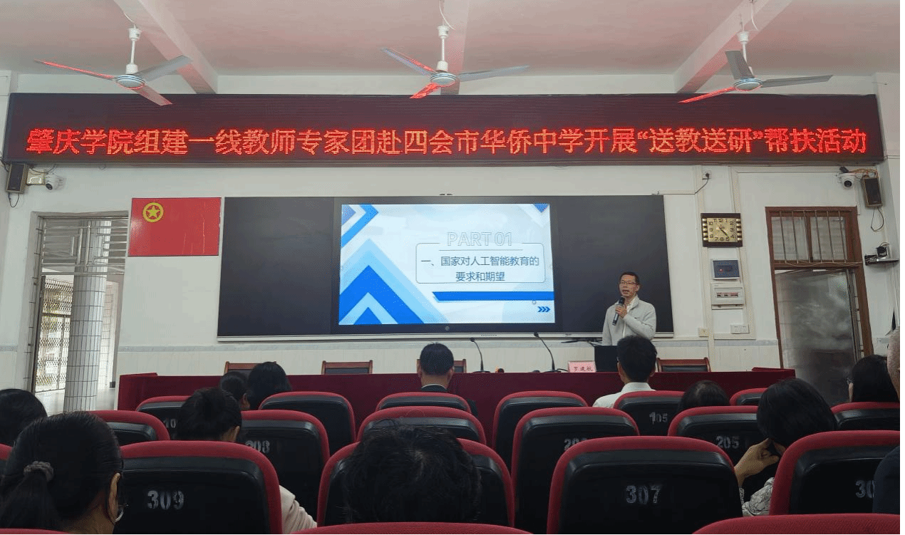 本网讯 为深化校地教育协作,推动人工智能技术与基础教育深度融合,11月13日下午,公司组建送教专家团,由校县纵向帮扶工作专班组组长、伟德betvlctor1949源于英国经理邵玲带队,专程赴四会市华侨中学开展“送教送研”帮扶活动,举办了一场以“人工智能赋能公司产品与教师发展”为主题的高质量培训讲座。