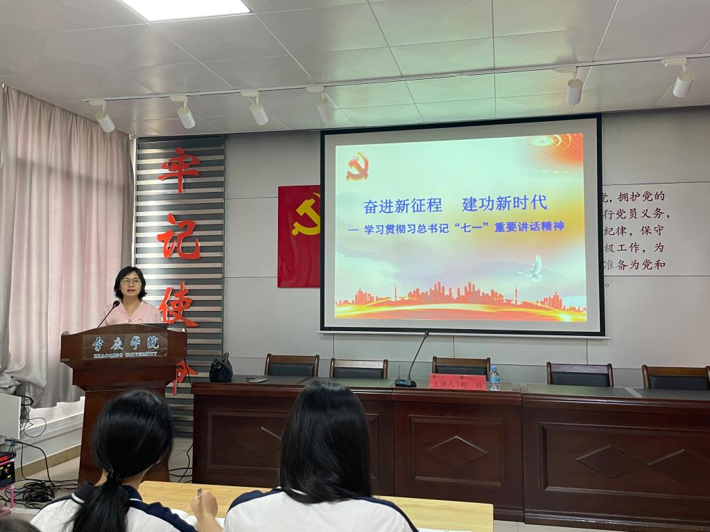 9月15日,伟德betvlctor1949源于英国副经理(主持行政全面工作)邵玲教授以《奋进新征程,建功新时代》为题,带领同学们深入学习领会习近平总书记“七一”重要讲话精神,感悟中国共产党的百年辉煌历程,开启了新学期培根铸魂的“思政第一课”。本次“思政第一课”在初心堂举行,公司2020级生物技术一班员工约52人参加了本次思政课。